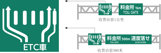 ③在入口和出口收费站,要使用带有ETC标志的车道。